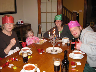 We all had a fun time over the holidays, especially with Chanukah and Christmas both falling at the same time. Amelia really enjoyed opening presents and she received some really neat ones (we'll have a video of one up shortly). She spent a lot of time with her grandmother Elise (Goggy) and her Uncle Davie, and we managed to find Christmas crackers for everyone, though we didn't use them until New Year's Eve and New Year's Day!